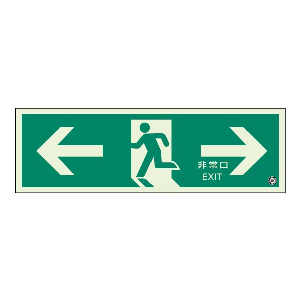 ▼ 避難口誘導標識・蓄光板・両面テープ付き 非常口 左右 夜間 避難口看板 un-319-62B