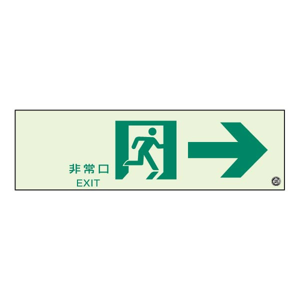 ▼ 通路誘導標識・蓄光板・両面テープ付き 非常口 右 夜間 避難口看板 un-319-65B