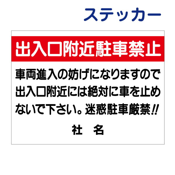 看板風注意ステッカー 出入口附近 駐車禁止 迷惑駐車厳禁 出入り口 ステッカー シール t1-6st