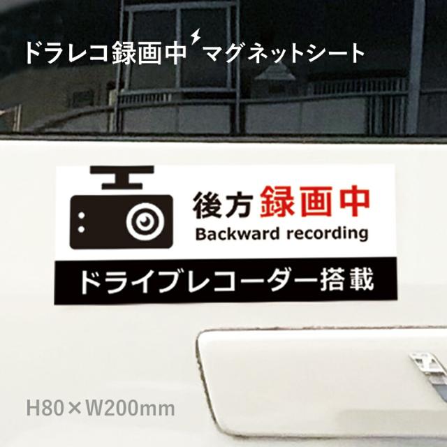 後方録画中 ドライブレコーダー搭載 マグネットシート H80×W200mm 厚み0.8mm あおり運転防止 搭載 mag-sheet8-3