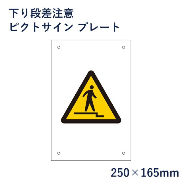 下り段差注意 ピクトサイン プレート H250×W165mm ピクトグラム マーク 看板 危険 段差注意 ピクト 標識 表示板 mark-26