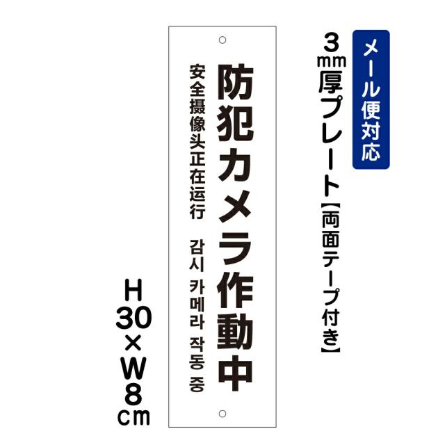 両面テープ付き 防犯カメラ作動中 24H SECURITYSYSTEM 外国語表記 H300×W80mm プレート 注意プレート att-003t-r