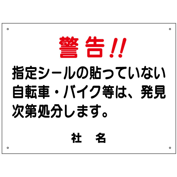 駐輪場看板 指定シール貼ってね 看板 H45×W60cm 特注内容変更可 駐輪場看板 プレート S-51