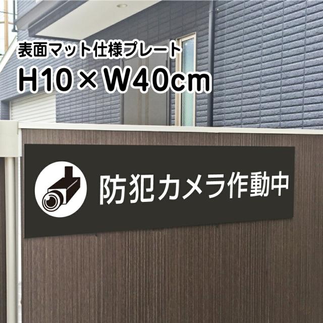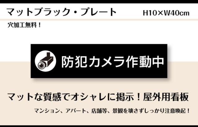 防犯カメラ作動中プレート 看板 マットブラック H10×W40cm シルバーアルミ複合板 お洒落 黒 看板 店内標識や室内プレートにも bla10-1
