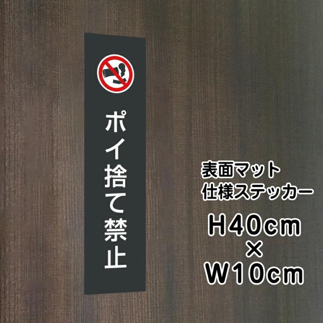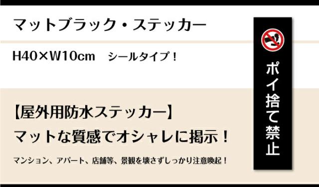 ポイ捨て禁止 ステッカーマットブラック H40×W10cm 黒 ステッカー 屋外店舗標識や室内掲示にも シールタイプ ゴミ捨て禁止 bla10-13stt