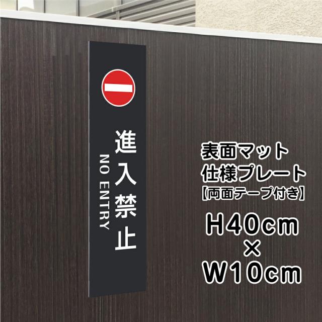 両面テープ付き 進入禁止 NO ENTRY プレート 看板 マットブラック H40×W10cm シルバーアルミ複合板 黒 屋外 bla10-12t-r