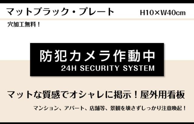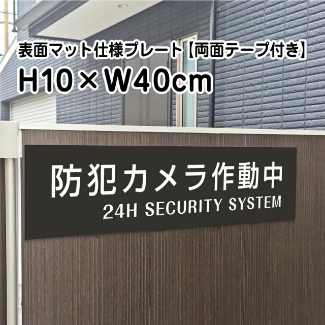 両面テープ付き 防犯カメラ作動中 プレート 看板マットブラック H10×W40cm シルバーアルミ複合板 屋外 お洒落 黒 看板 bla10-2-r