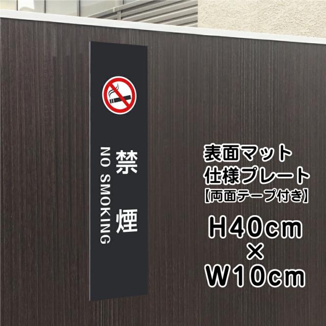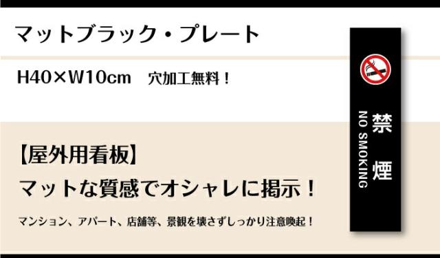両面テープ付き 禁煙 NO SMOKING プレート 看板 マットブラック H40×W10cm シルバーアルミ複合板 黒 屋外 bla10-19t-r