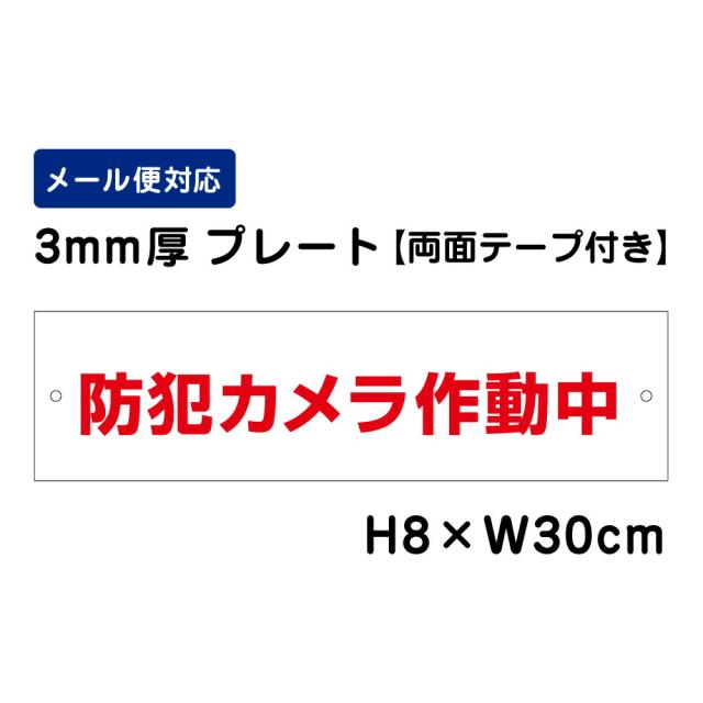 両面テープ付き 防犯カメラ作動中 H80×W300mm プレート 注意プレート att-009-r
