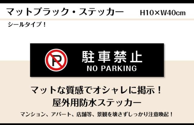 駐車禁止 NO PARKING ステッカーマットブラック H10×W40cm 黒 ステッカー 室内掲示 シールタイプ bla10-4sty