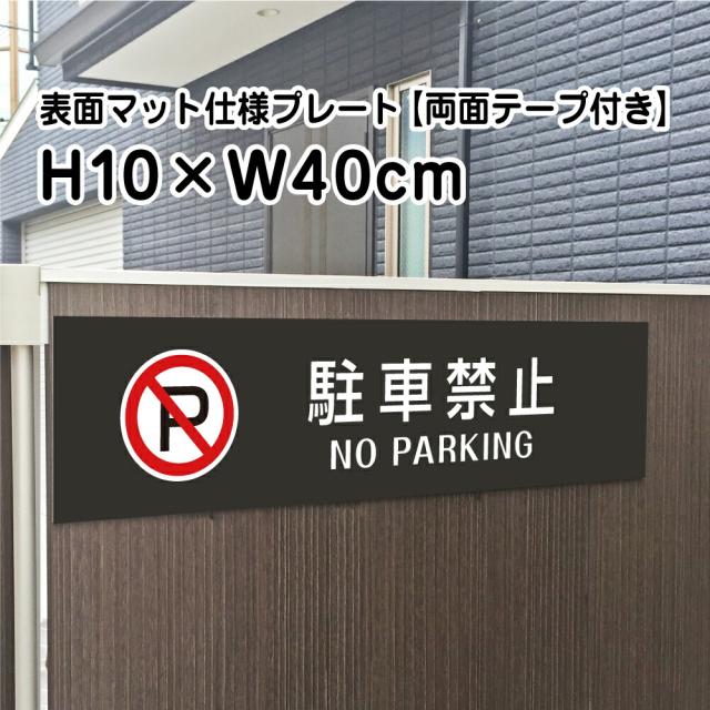 両面テープ付き 駐車禁止 NO PARKING プレート 看板 マットブラック H10×W40cm シルバーアルミ複合板 屋外 黒 bla10-4-r