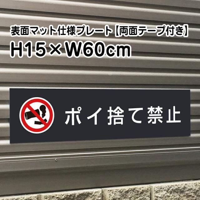 両面テープ付き ポイ捨て禁止 プレート 看板マットブラック H15×W60cm シルバーアルミ複合板 屋外 黒 ゴミ捨て禁止 bla15-13-r