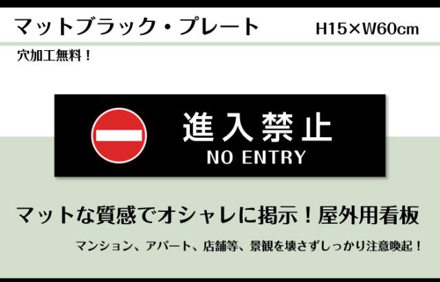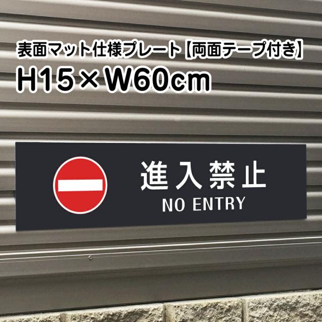 両面テープ付き 進入禁止 NO ENTRY プレート 看板 マットブラック H15×W60cm シルバーアルミ複合板 屋外 黒 bla15-12-r