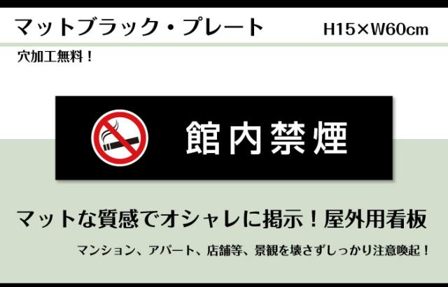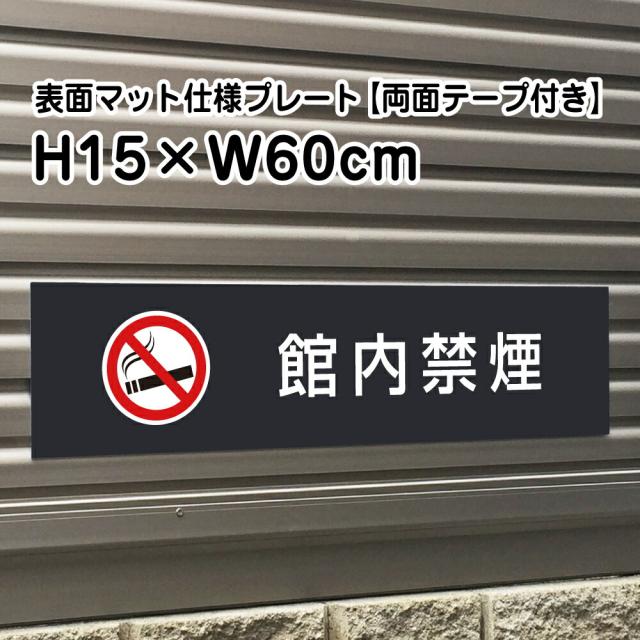 両面テープ付き 館内禁煙 プレート 看板 マットブラック H15×W60cm シルバーアルミ複合板 屋外 黒 看板 室内プレート bla15-16-r