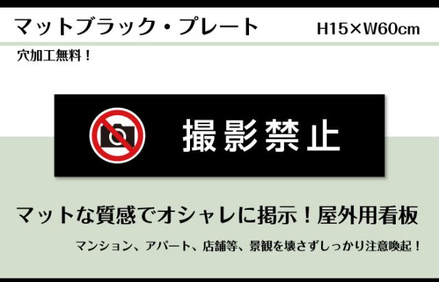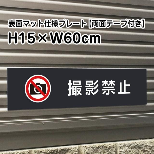 両面テープ付き 撮影禁止 プレート 看板 マットブラック H15×W60cm シルバーアルミ複合板 屋外 黒 看板 室内プレート bla15-14-r