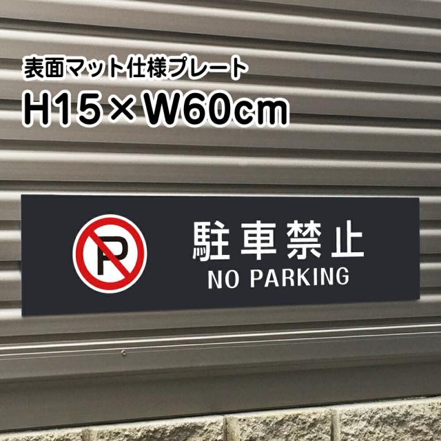 駐車禁止 NO PARKING プレート 看板 マットブラック H15×W60cm シルバーアルミ複合板 黒 看板 室内プレート bla15-4