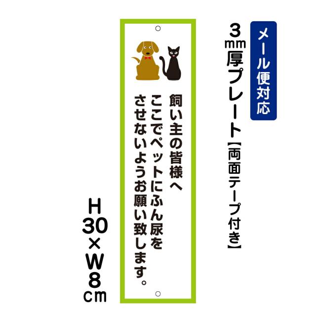 両面テープ付き 飼い主の皆様へ ここでペットにふん尿をさせないようお願い致します 注意標識 H300×W80mm 注意プレート att-1203t-r
