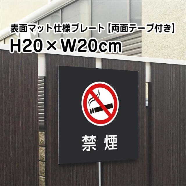 両面テープ付き 禁煙 プレート 看板 マットブラック H20×W20cm シルバーアルミ複合板 屋外 黒 看板 室内プレート bla20-18-r
