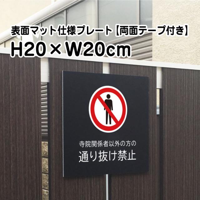 両面テープ付き 寺院関係者以外の方の通り抜け禁止 プレートマットブラック H20×W20cm シルバーアルミ複合板 bla20-23-r