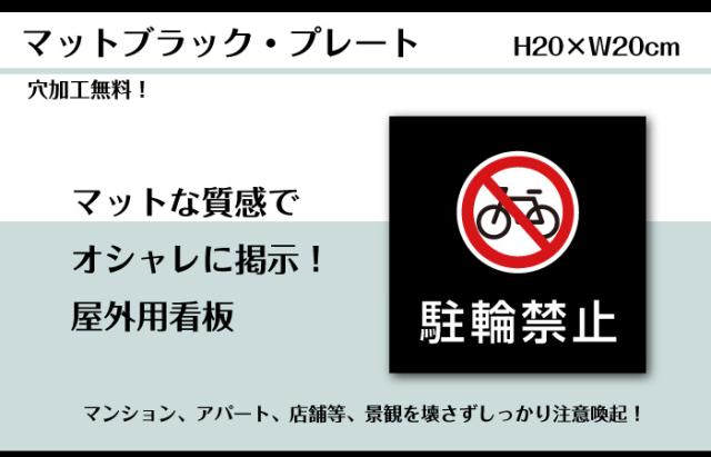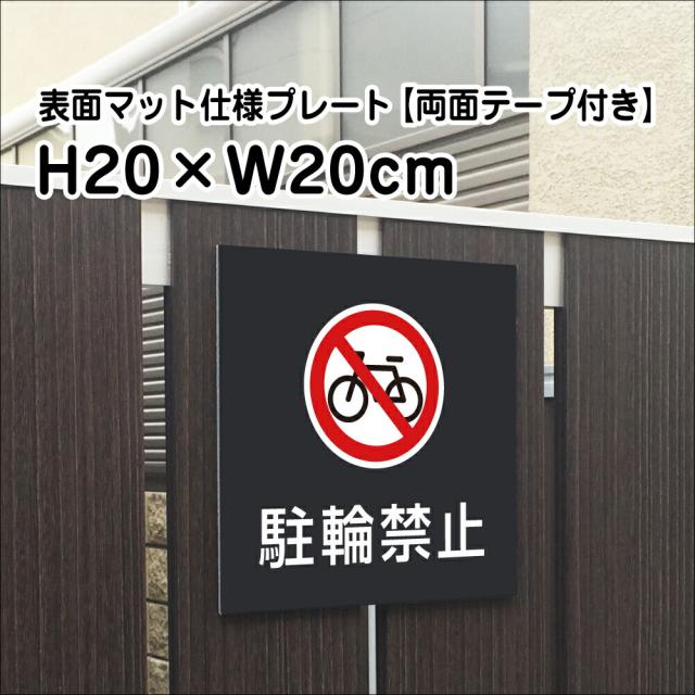両面テープ付き 駐輪禁止 プレート 看板 マットブラック H20×W20cm シルバーアルミ複合板 屋外 黒 看板 室内プレート bla20-7-r