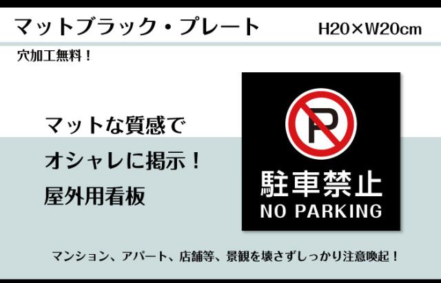 両面テープ付き 駐車禁止 NO PARKING プレート 看板マットブラック H20×W20cm シルバーアルミ複合板 屋外 黒 bla20-4-r
