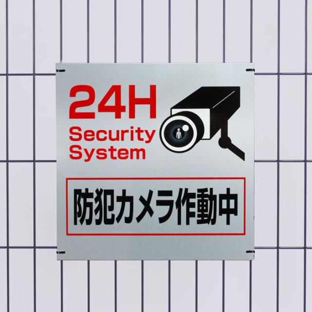 防犯カメラサイン 看板 シルバーアルミ複合板H250×W250mm 防犯カメラ作動中 bos-3-1