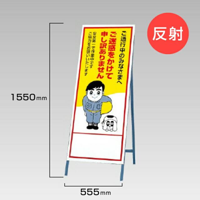 工事看板 ご通行中の皆様へ ご迷惑おかけして申し訳ありません 反射看板 スタンド看板 A型看板 自立 工事 道路 H1550×W550mm un-394-11