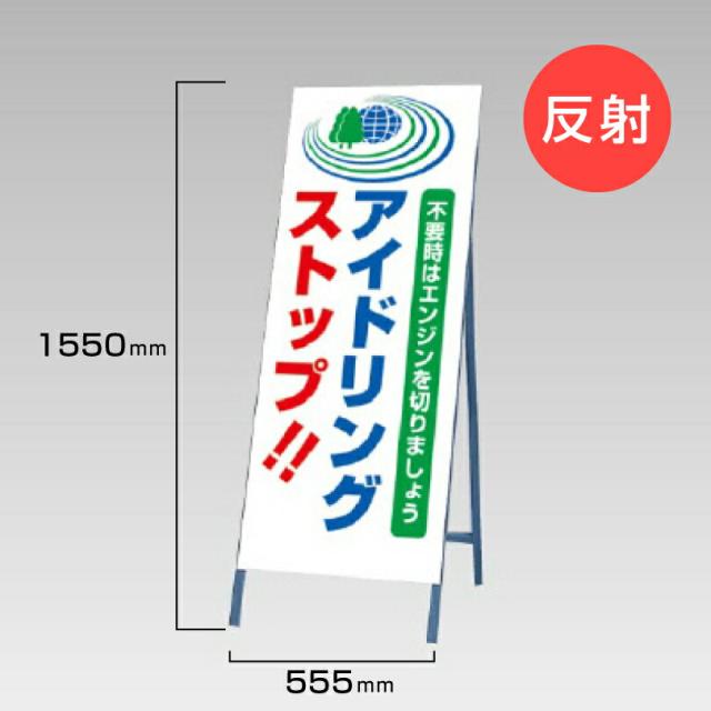 工事看板 アイドリングストップ 反射看板 スタンド看板 A型看板 自立 工事 道路 H1550×W550mm un-394-41