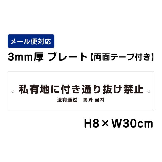 両面テープ付き 私有地に付き通り抜け禁止 (外国語表記) H80×W300mm プレート 注意プレート att-504-r