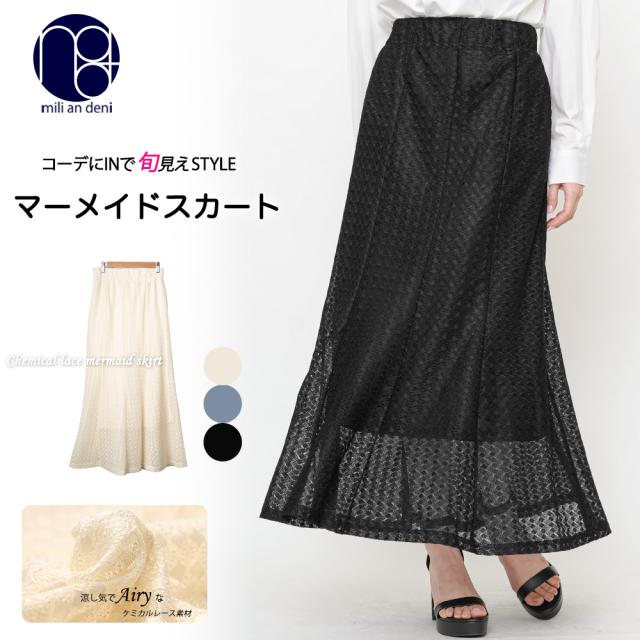 春新作 ケミカルレース マーメイドスカート スカート ロング レース ボトム ブルー M L レディース ミリアンデニ 春夏 メール便(郵2) p61313