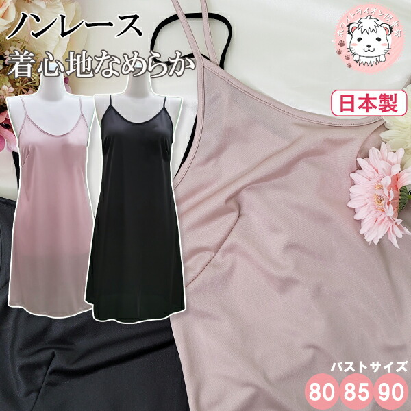 吊りスリップ 85丈 ロング ノンレース 透け防止 静電気対策 80/85/90 | レディース ポリエステル キャミソール スリップ シャツ インナー 下着
