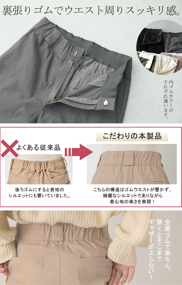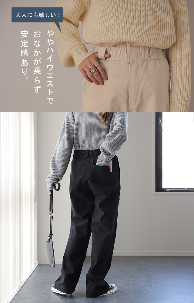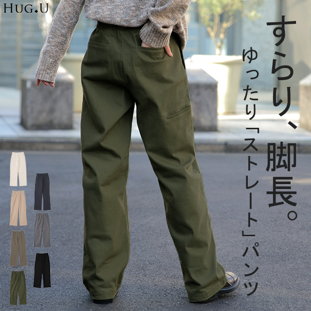 パンツ 『 脚長 宣言! 』 一部1月中旬入荷 レディース 送料無料 チノパンツ ワイドパンツ ワイド 大きいサイズ ボトムス チノ チノパン ストレート 体型カバー ロング ゴム 長ズボン ロングパンツ 黒 白 ベージュ 大きいサイズ ゆったり HUG.U 冬 秋 秋新作