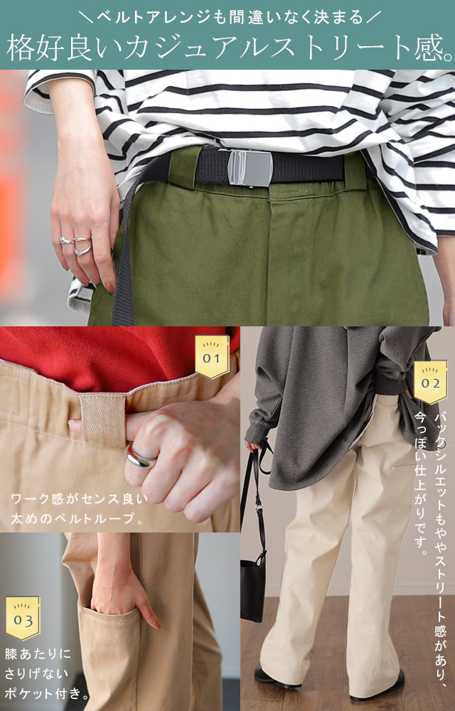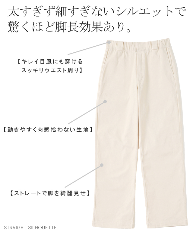 ワイドすぎないストレートラインで脚長効果も抜群です。