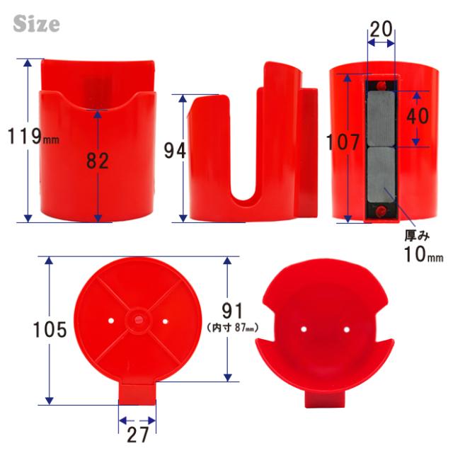 マグネットカップホルダー 2個セット レッド ブラック 強力 マグネット缶ホルダー スプレー缶ホルダー ドリンクホルダー マグネットトレイ ツールホルダー 磁石 KIKAIYA