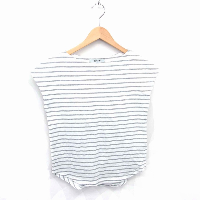 【中古】ナノユニバース カットソー Tシャツ ボーダー ボートネック フレンチスリーブ 半袖 ホワイト グレー