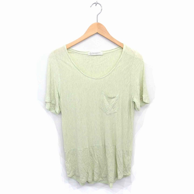 【中古】B&Y ユナイテッドアローズ チュニック カットソー Uネック ストライプ 半袖 ライトグリーン 黄緑 /TT31