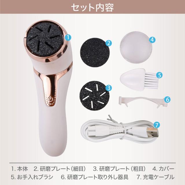 8.セット内容:本体、研磨プレート(粗目・本体に取り付け済み)、研磨ぷれーと(粗目)×1、研磨プレート(細目)×1、USB充電ケーブル、お手入れブラシ×1、透明カバー×1