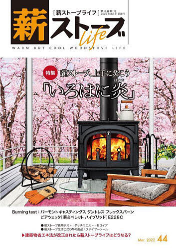 薪ストーブを焚く時には、どんなにベテランでもメーカーの開発者でも煙やにおいを完全に抑えることはできません。昨今住宅密集地で薪ストーブを使用する方が増えていますが、近隣への配慮として極力煙とにおいを抑えて薪ストーブを楽しみたいものです。今号の特集では「いろはに炎」燃焼法で初心者にもわかりやすく順序立てた燃焼方法を解説します。建物省エネ法が改正されましたが、この法律に則った住宅を建てると、薪ストーブ生活はどうなるのでしょうか。高気密・高断熱の家の場合、大きな出力の薪ストーブは持て余してしまうかもしれません。この法律を読み解いて、今後増えるであろう高気密・高断熱の家と薪ストーブの関係を見ていきます。紹介/試焚はアメリカの名門バーモントキャスティングスの新型薪ストーブ“ダントレス フレックバーン”と薪とペレットを共用できるイタリアのピアツェッタE228 Cの2台です。