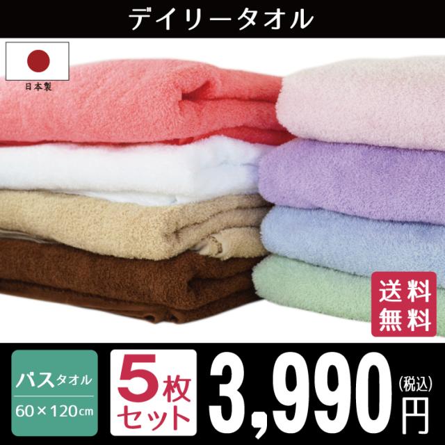 バスタオル セット 5枚 日本製 タオル デイリータオル 約60×120cm 泉州タオル 国産 高級感 家庭用 吸水性 速乾性 ふわふわ