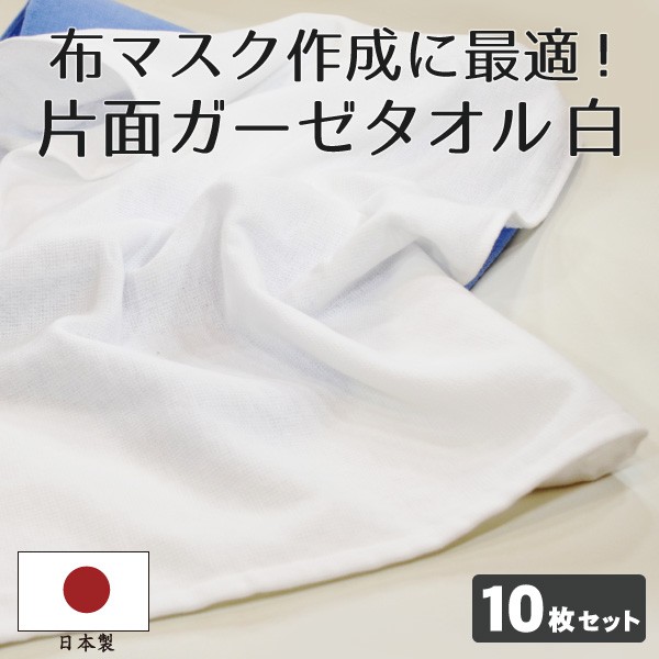 フェイスタオル 白 片毛 日本製 <10枚セット>約34×86cm 片面ガーゼ 表ガーゼ 裏パイル 洗える 布マスク 手作り ウイルス 花粉症 綿 布マスク作成に最適!
