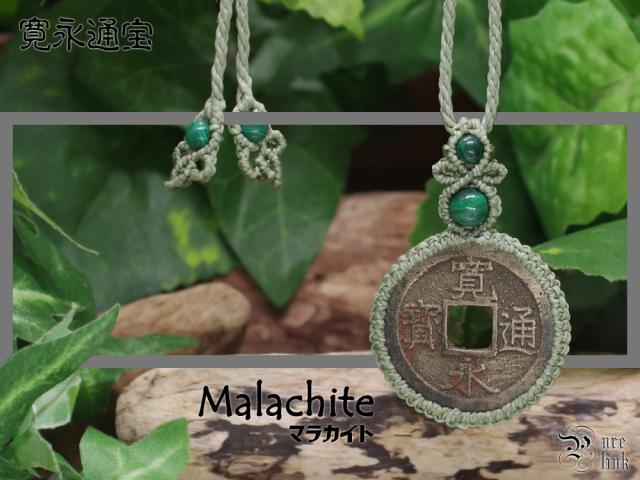 古銭・寛永通宝(十一波 4文銭)と『マラカイト』マクラメ編みネックレス