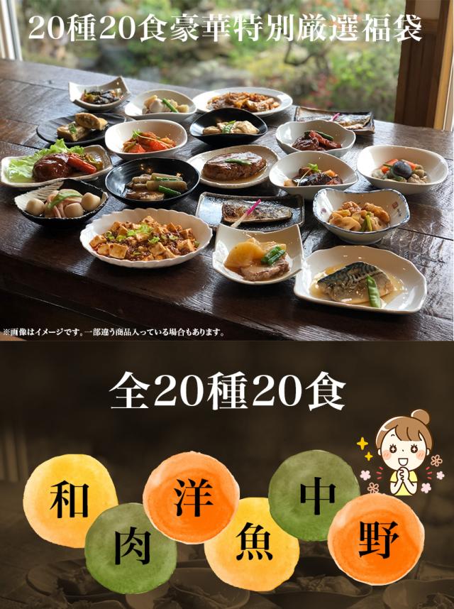 【送料無料】【単品合計13,230円以上相当がセット割引で8,100円!】20種20食豪華特別厳選福袋 ギフト 惣菜 手作り 煮物 取り寄せ お弁当 冷凍 レトルト お試し グルメ 在宅 応援 誕生日 お歳暮 お礼 内祝い 母の日 父の日 敬老の日 引越祝い 新築祝い 就職祝い 仏事