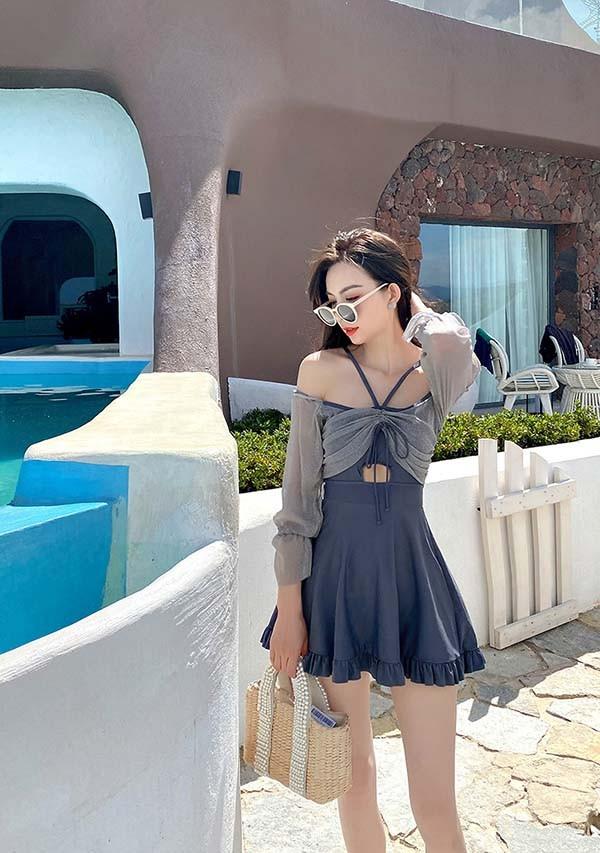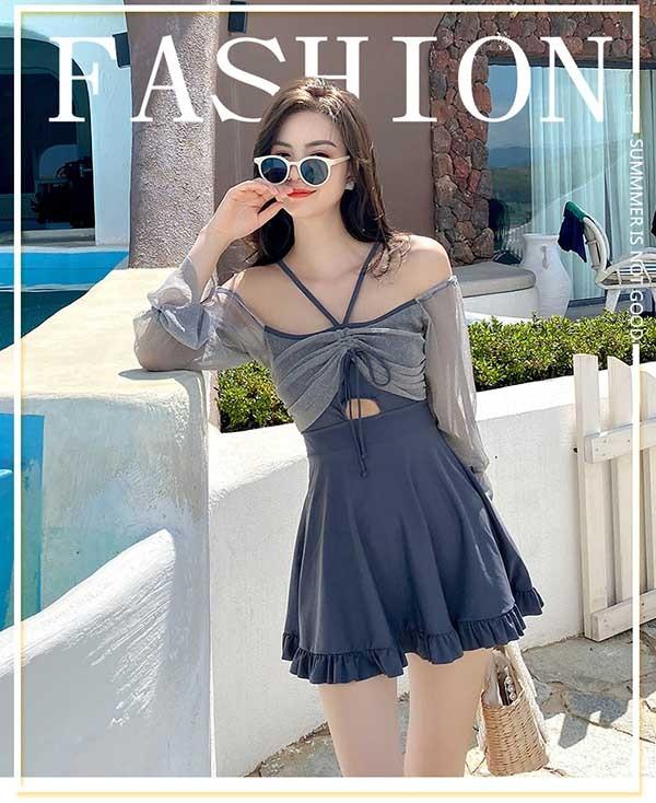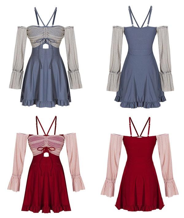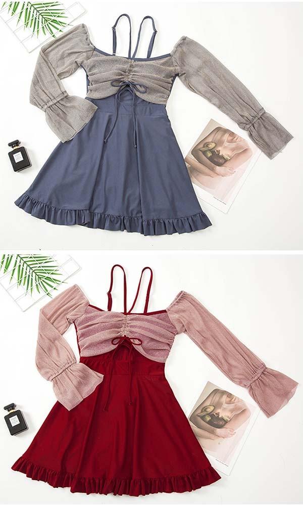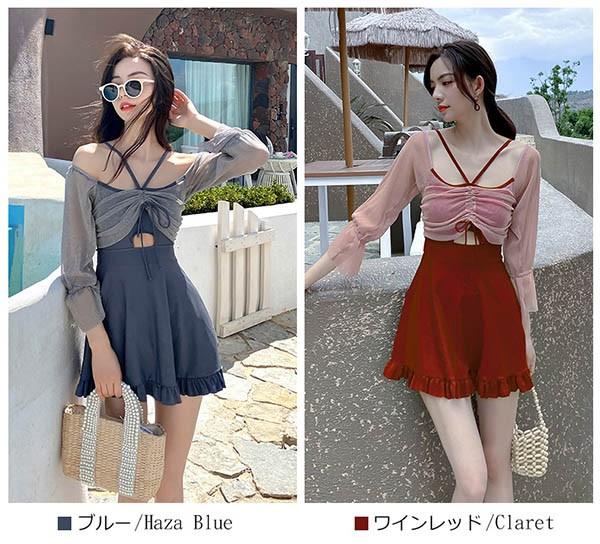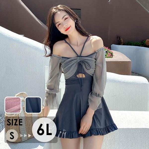 2WAYS ワンピース水着 レディース オフショルダー 水着 長袖 体型カバー 大きいサイズ 3L 4L 5L 6L セクシー ワンピース ノンワイヤー 着痩せ 盛れる ママ ブルー ワインレッド ぽっちゃり 韓国 可愛い 温泉 ビーチ プール 海 水泳 女性用 大人 オトナ女子 df160n1n1c9