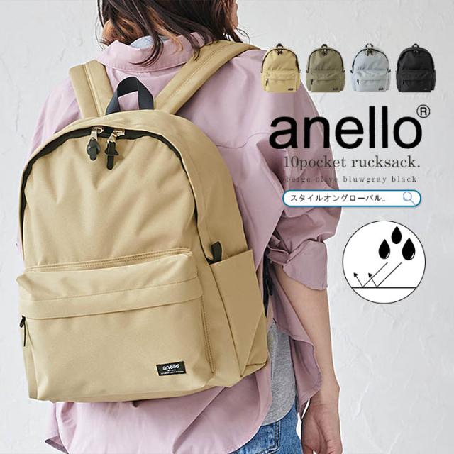 バックパック anello アネロ リュック 大容量 レディース メンズ 10ポケット リュックサック 撥水 大きめ 軽量 おしゃれ デイパック ママバッグ 大きめ A4 多収納 シンプル カジュアル 通勤 通学 ユニセックス【s0665】