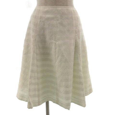 【中古】23区 オンワード樫山 スカート フレア ひざ丈 シャイニー 光沢 ボーダー アイボリー 38 レディース