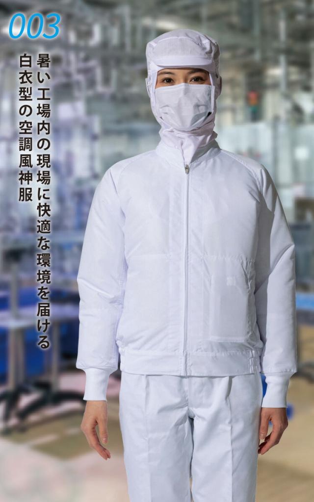 空調風神服 白衣ブルゾン 003 RD9291J RD9210HN/RD9220HN 日本製12Vバッテリー/ハイパワーファンセット 制電 消臭 アタックベース 電動ファン付ウェア 作業服 作業着 空調作業服 ファン付きウェア