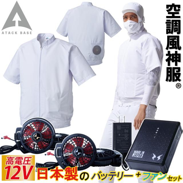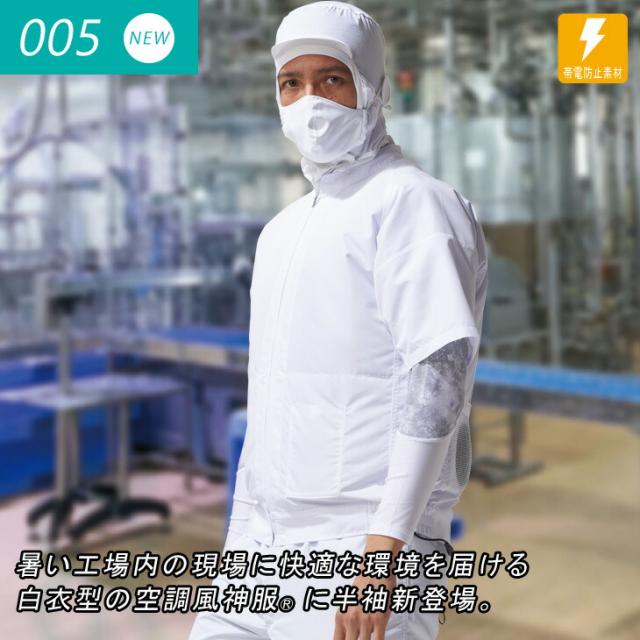 空調風神服 半袖白衣ブルゾン 005 RD9291J RD9210HN/RD9220HN 日本製12Vバッテリー/ハイパワーファンセット 制電 消臭 アタックベース 電動ファン付ウェア 作業服 作業着 空調作業服 熱中症対策 夏