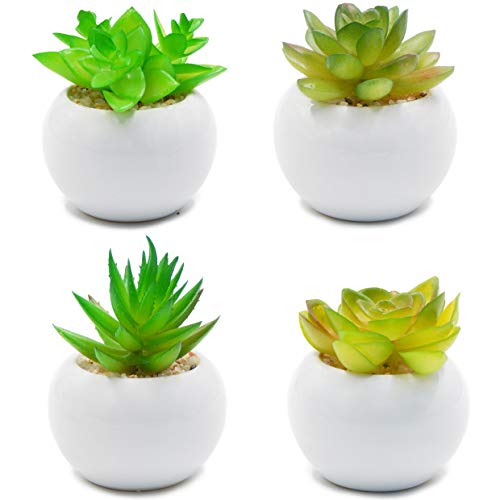 【ミニオフィスの装飾】伝統的な陶器のポットで4つの小さなかわいい植物は、あなたの家、オフィス、バスルームに自然な景色をもたらします。
