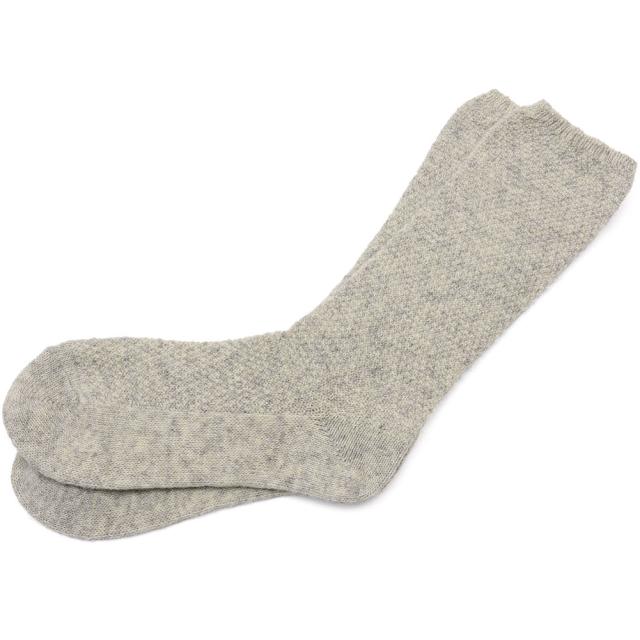 柔らかさと軽量感に富んだカシミヤ混のソックス。カシミヤ混なのであたたかく着用していただけ、ふんわりとした素材感が冬らしい仕上がりになっています。ぽこぽことした編模様が可愛く、evam evaらしい優しい色合いも特徴になっています。