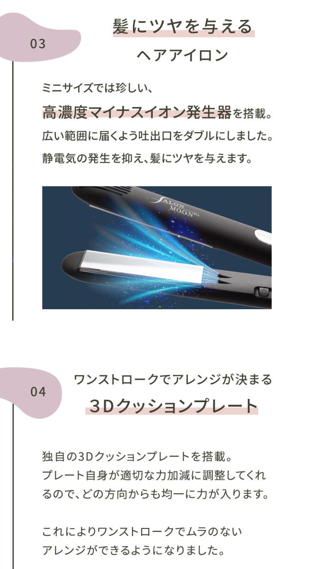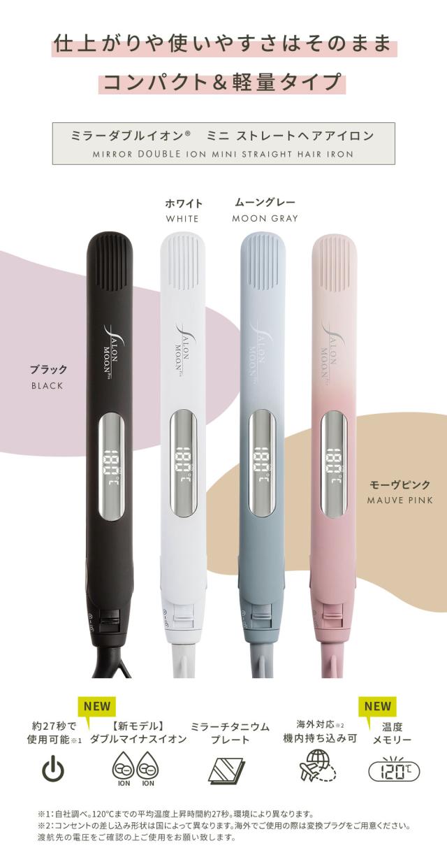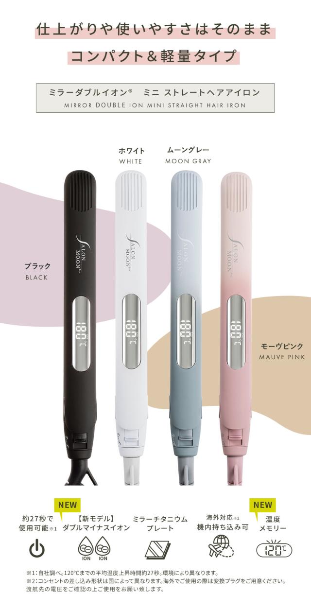ヘアアイロン ストレートアイロン ミニヘアアイロン サロンムーン 【 最新モデル ランキング1位獲得 】 ミラーダブルイオン プロ仕様 230℃ 海外対応
